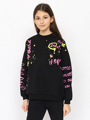Трикотажная футболка оверсайз для девочки выполнена из мягкого хлопкового трикотажа. Свободный силуэт с заниженной линией плеча не сковывает движения. Модель дополнена круглым вырезом горловины и короткими рукавами. Перед декорирован ярким принтом с блестящим эффектом (надпись: Хорошего дня). Мягкие и комфортные лосины средней посадки с поясом на резинке.