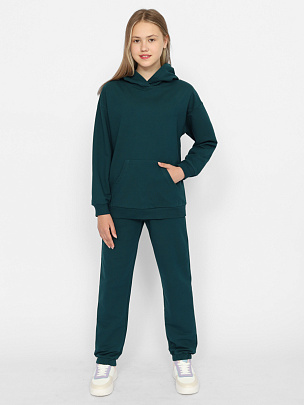Костюм из футера худи и джоггеры для девочки. Брюки-джоггеры и худи с капюшоном и карманом-кенгуру - удобная и универсальная повседневная одежда, для школы, для занятия спортом. Худи с капюшоном свободного силуэта, карманом-кенгуру, пояс и манжеты из трикотажного полотна кашкорсе, которые надежно облегают запястье ребенка. Брюки свободного силуэта, с манжетами из футера и резинкой в поясе. Отличный вариант для прогулок и активного отдыха. Спортивный костюм для девочки в стиле оверсайз не будет сковывать движения.